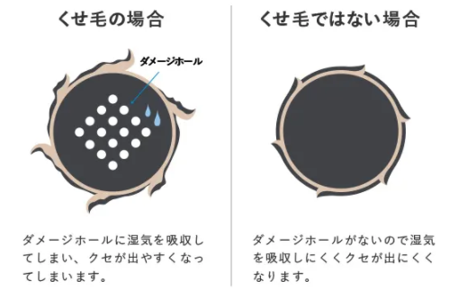カラーやアイロンなどでキューティクルが剥がれ、髪の内部の水分やタンパク質が流出することで、ダメージホール(空洞化)が